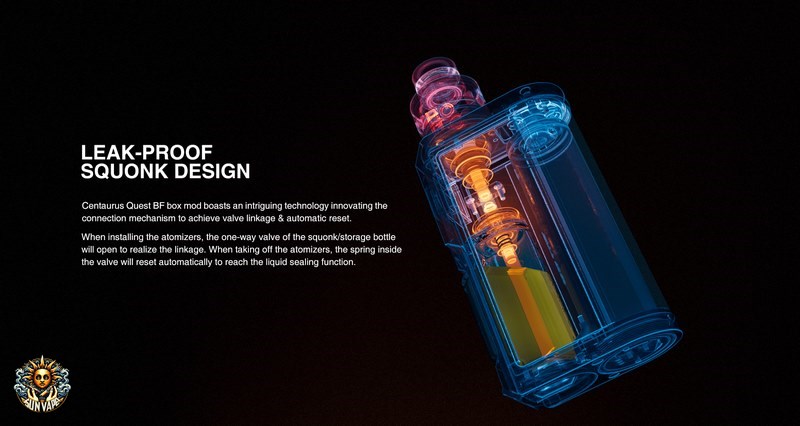 ویپ Lost Vape Centaurus Quest BF Kit یک باتری قابل تعویض ۱۸۶۵۰ یا ۲۱۷۰۰ (جداگانه به فروش میرسد) داشته و توان خروجی حداکثر آن ۱۰۰ وات است که باعث میشود تا بخار قدرت مند تری را تولید کند.